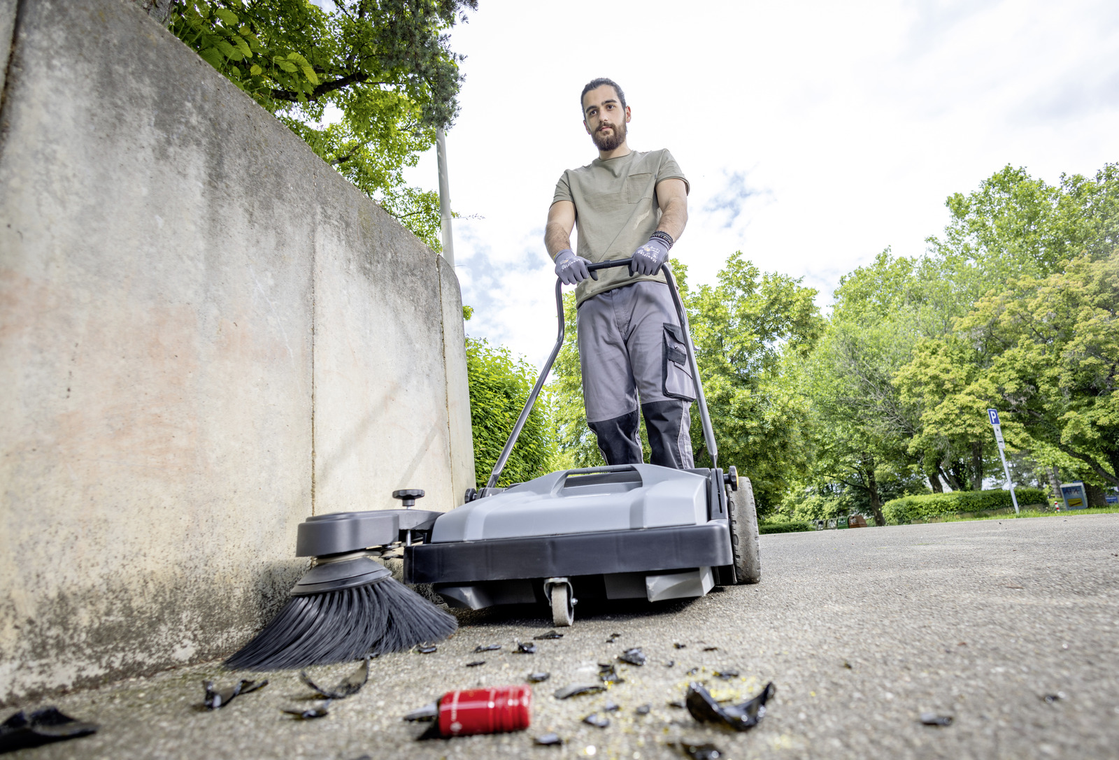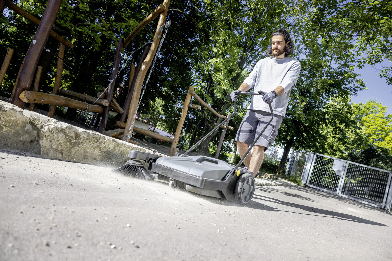 The compact KM 70/15 C Classic manual sweeper is always ready for action to sweep small areas efficiently. It can be used in indoor spaces and outside areas.