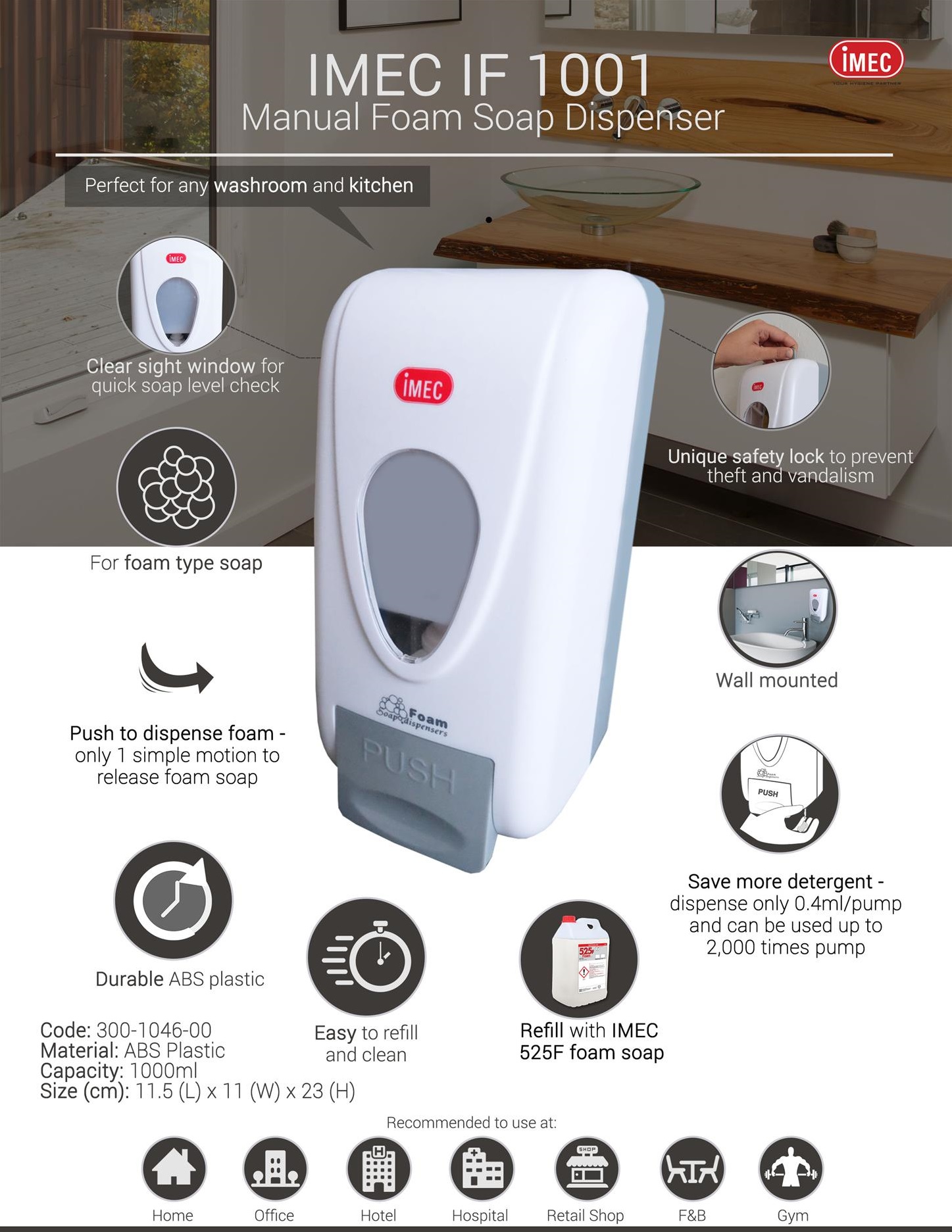 -Push to dispense foam – only 1 simple motion to release foam soap